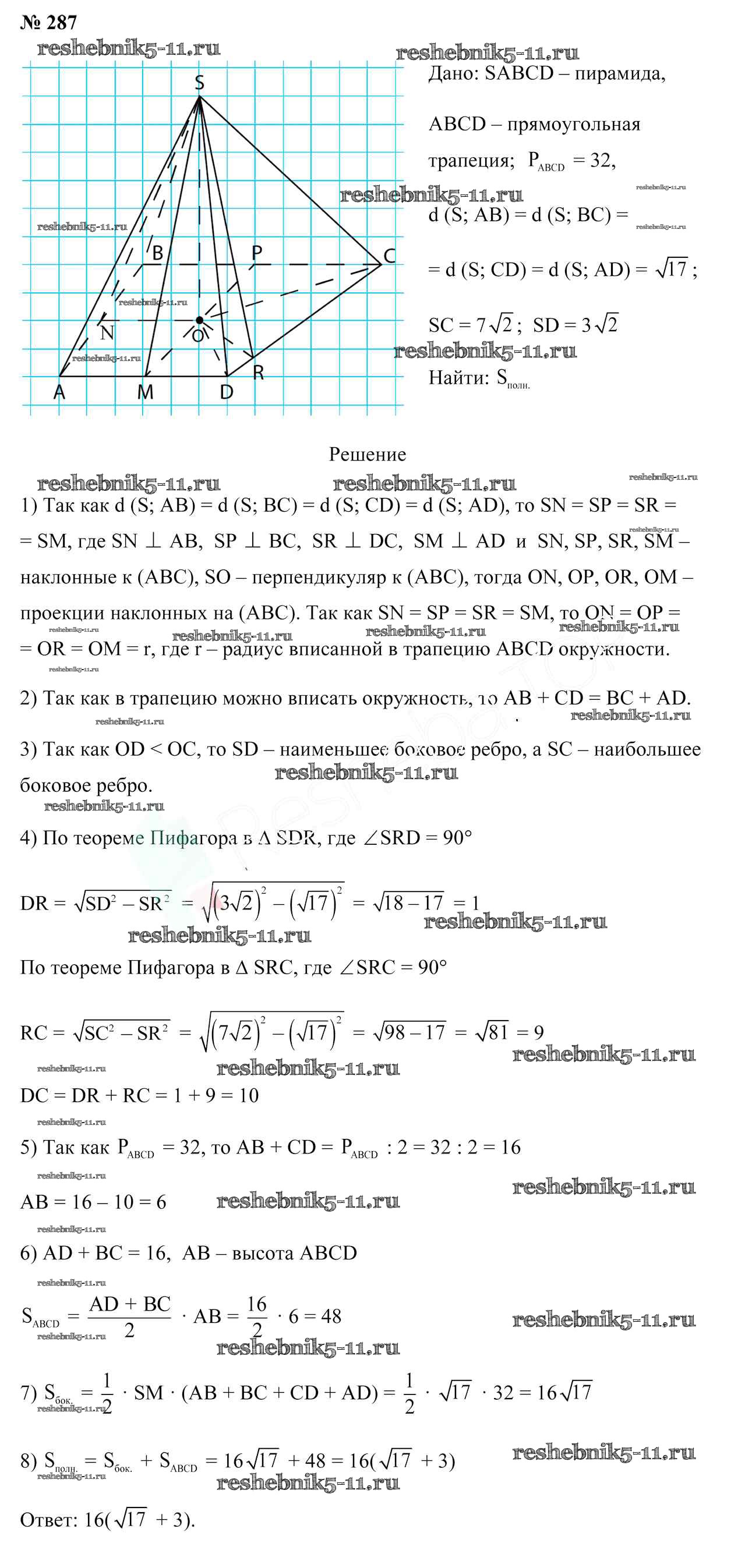 Готовая домашняя работа с ответами по Геометрии за 10 класс Латотин, Чеботаревский, Горбунова Учебник Народная асвета 2020 - Задачи 287