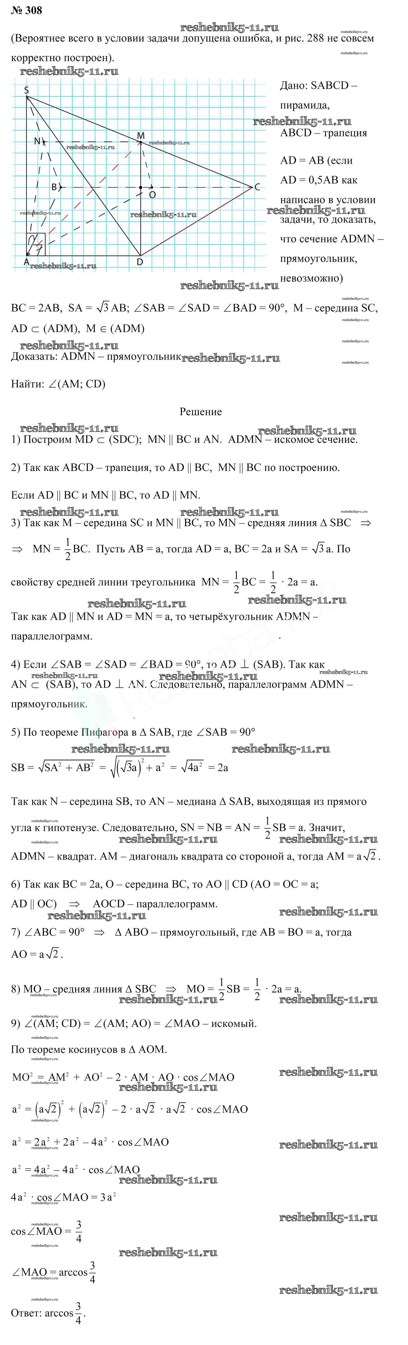 Готовая домашняя работа с ответами по Геометрии за 10 класс Латотин, Чеботаревский, Горбунова Учебник Народная асвета 2020 - Задачи 308