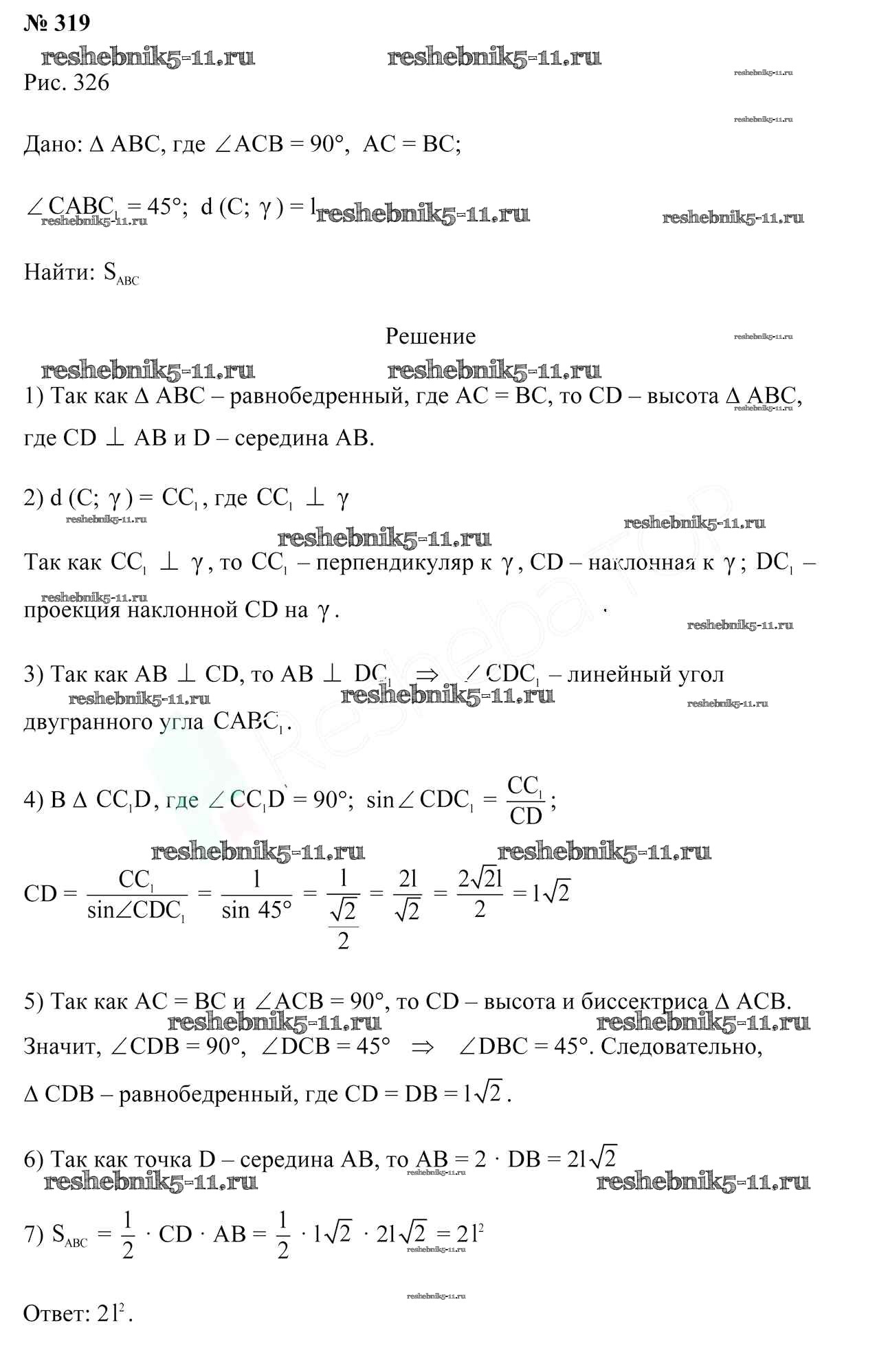 Готовая домашняя работа с ответами по Геометрии за 10 класс Латотин, Чеботаревский, Горбунова Учебник Народная асвета 2020 - Задачи 319