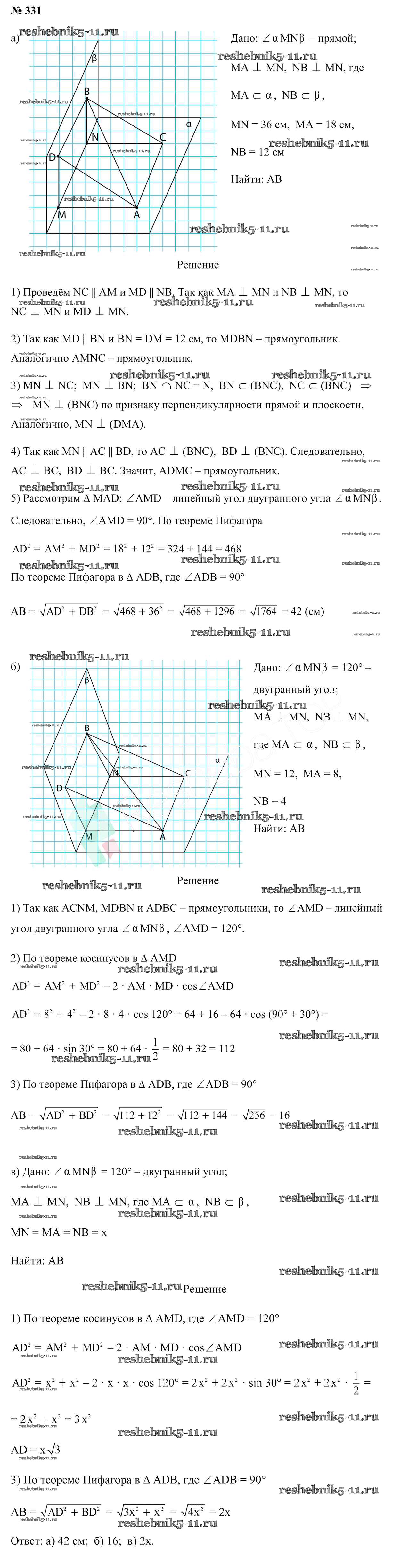 Готовая домашняя работа с ответами по Геометрии за 10 класс Латотин, Чеботаревский, Горбунова Учебник Народная асвета 2020 - Задачи 331