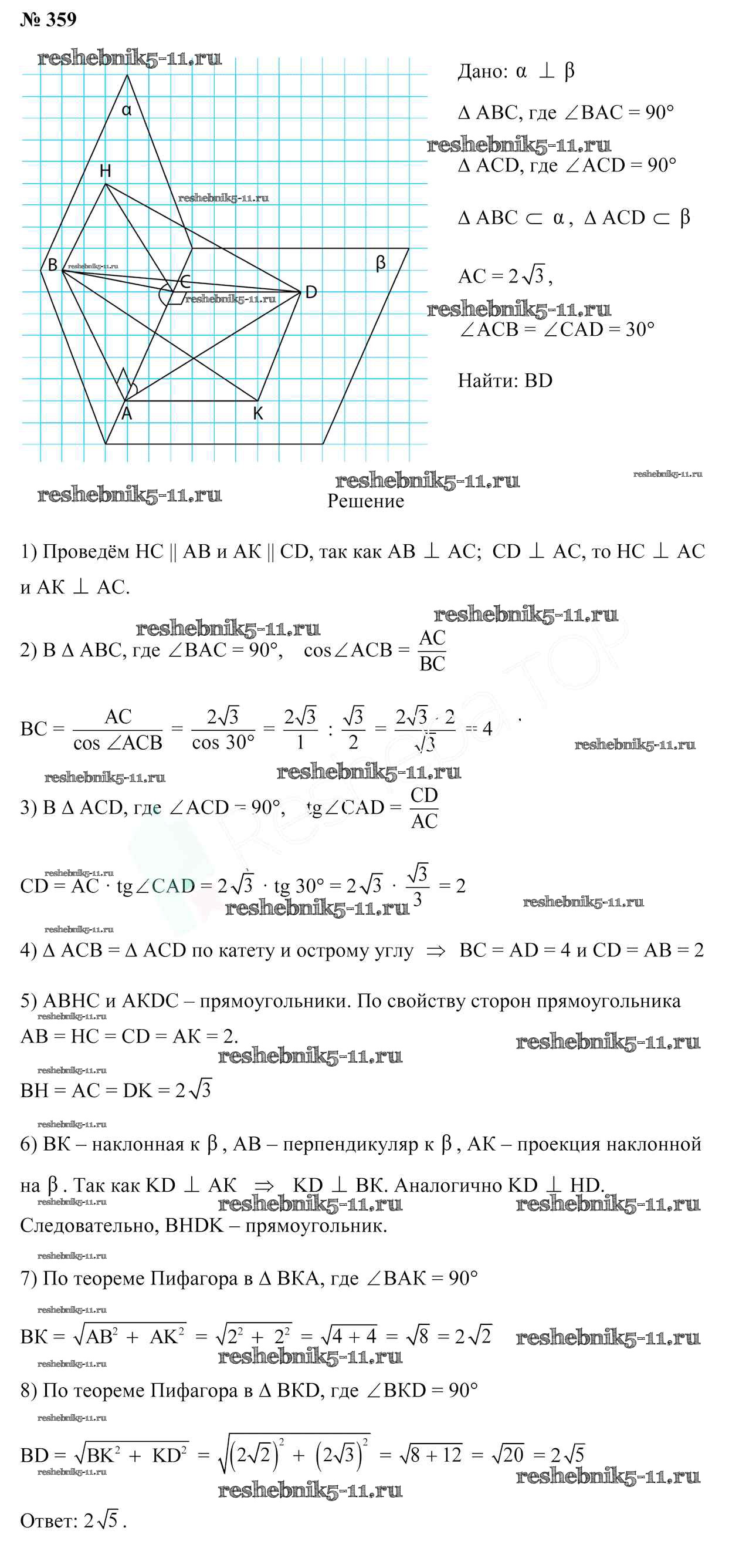 Готовая домашняя работа с ответами по Геометрии за 10 класс Латотин, Чеботаревский, Горбунова Учебник Народная асвета 2020 - Задачи 359