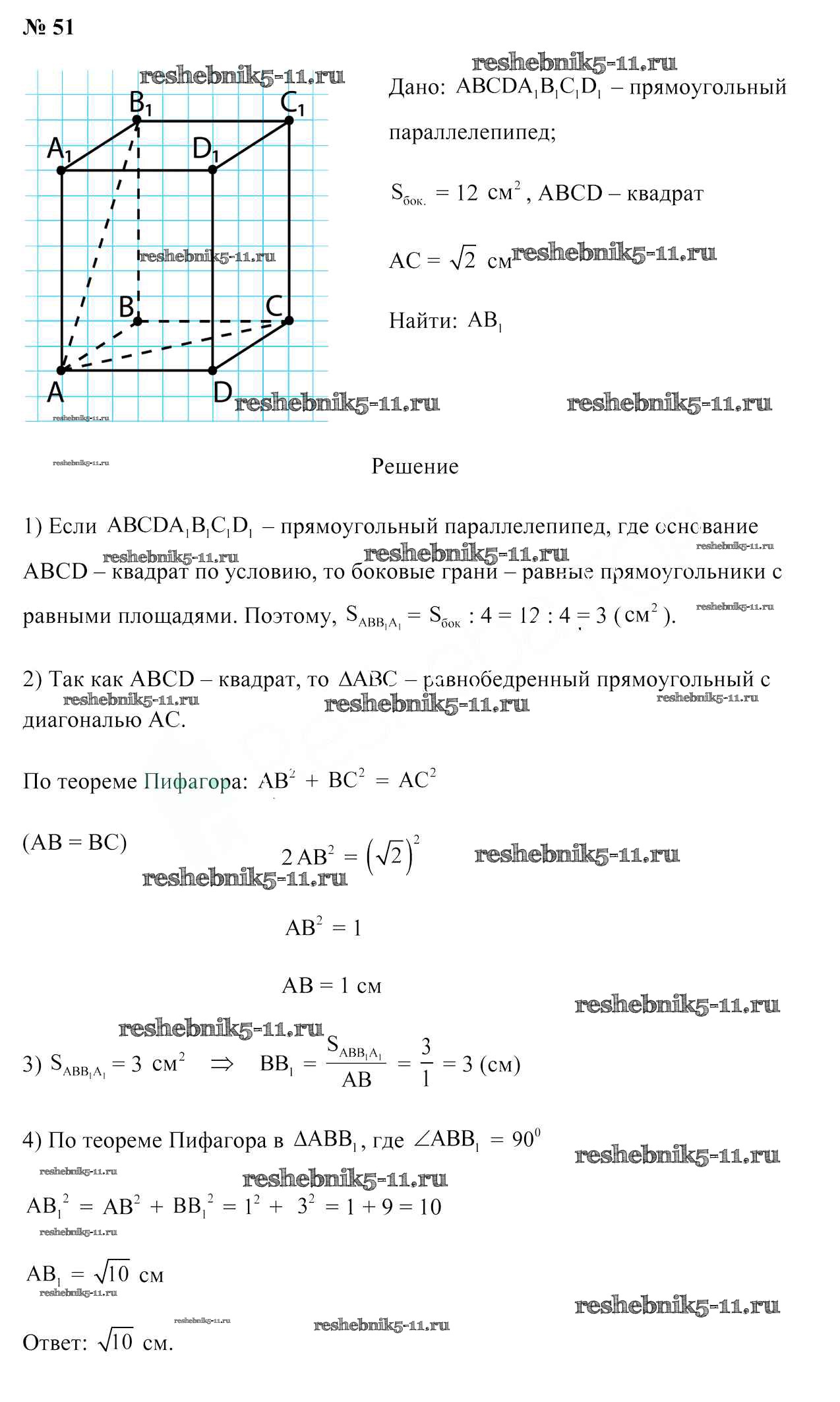 Готовая домашняя работа с ответами по Геометрии за 10 класс Латотин, Чеботаревский, Горбунова Учебник Народная асвета 2020 - Задачи 51
