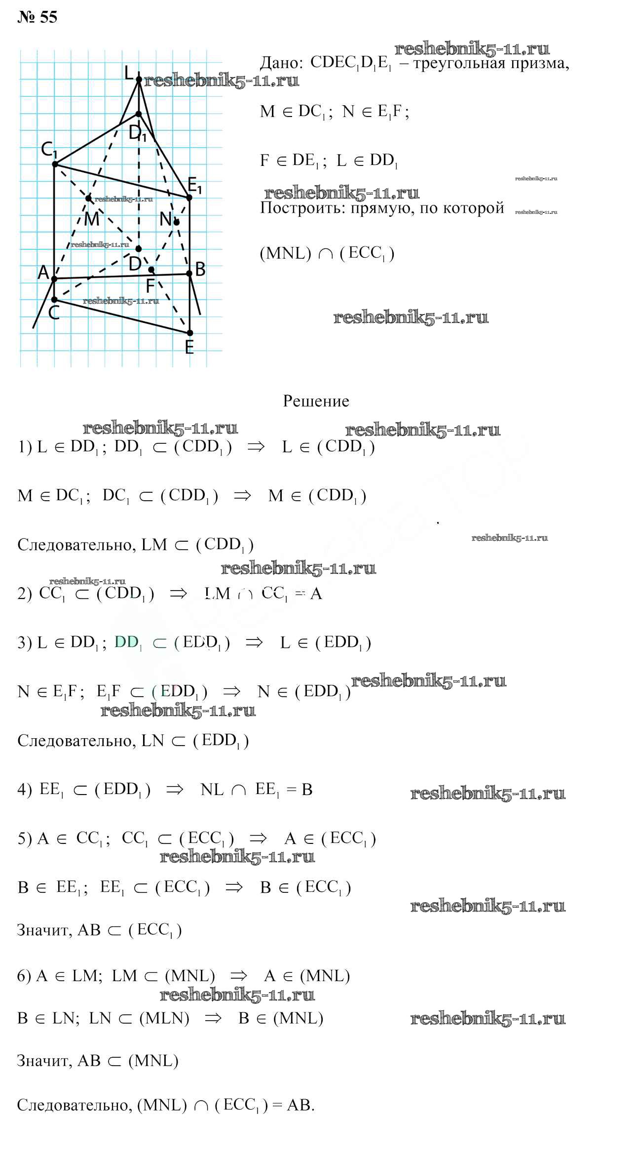 Готовая домашняя работа с ответами по Геометрии за 10 класс Латотин, Чеботаревский, Горбунова Учебник Народная асвета 2020 - Задачи 55