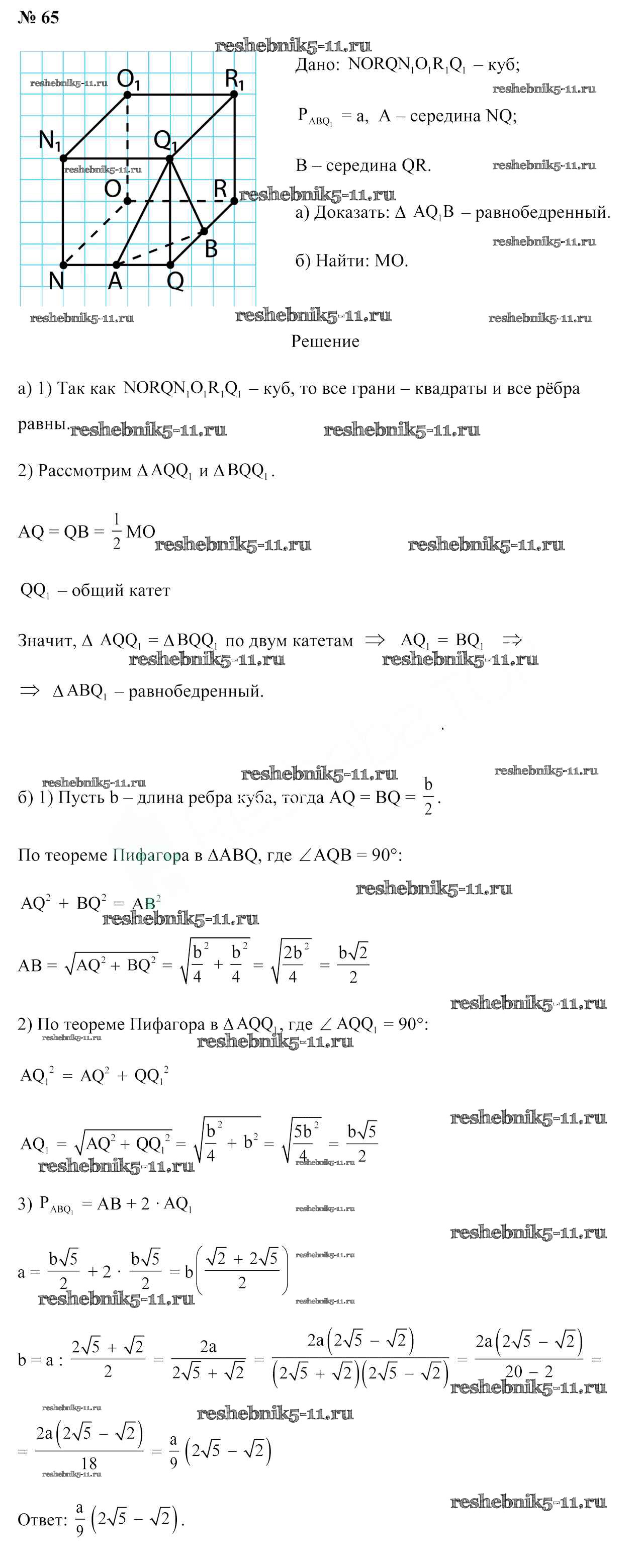Готовая домашняя работа с ответами по Геометрии за 10 класс Латотин, Чеботаревский, Горбунова Учебник Народная асвета 2020 - Задачи 65