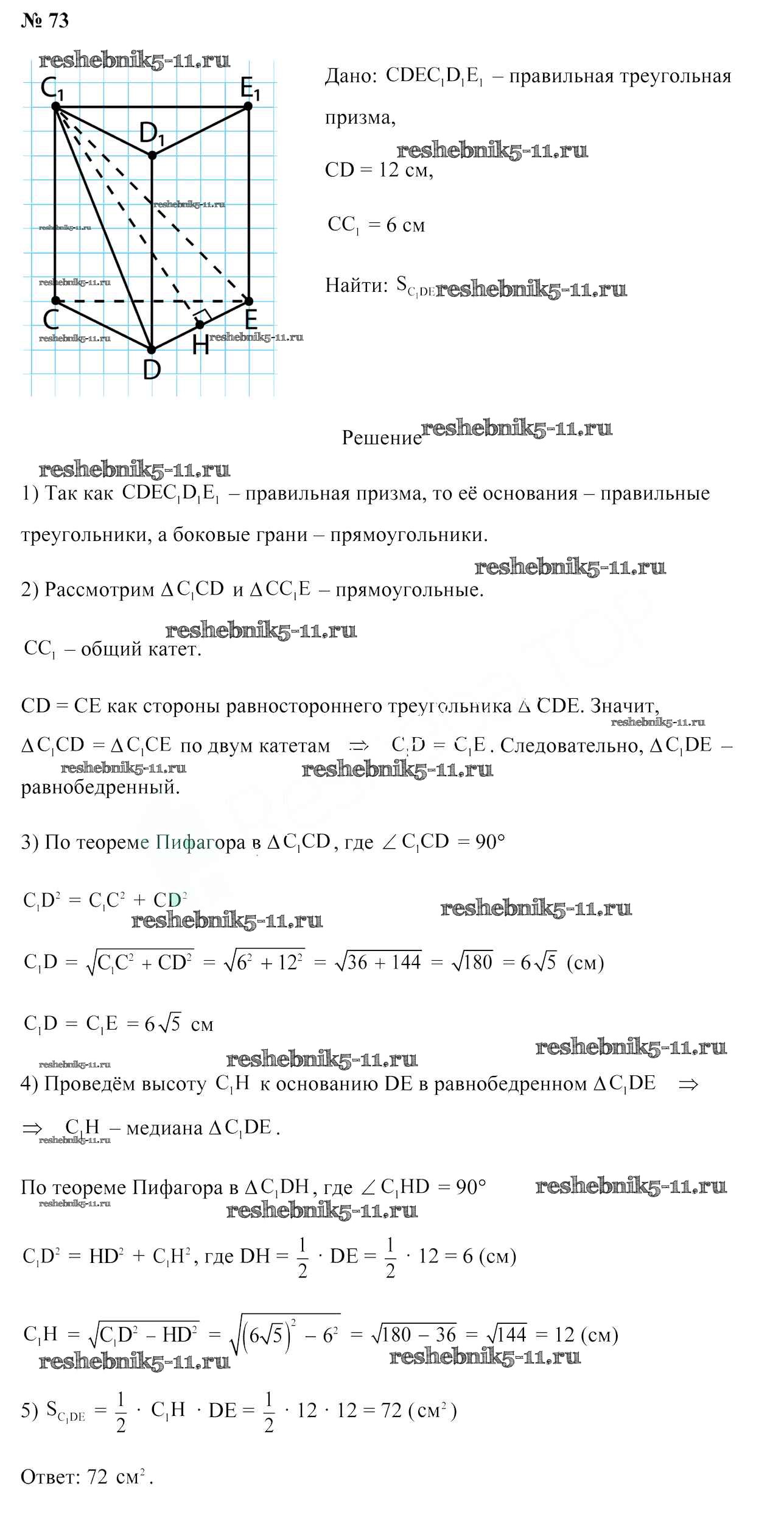 Готовая домашняя работа с ответами по Геометрии за 10 класс Латотин, Чеботаревский, Горбунова Учебник Народная асвета 2020 - Задачи 73