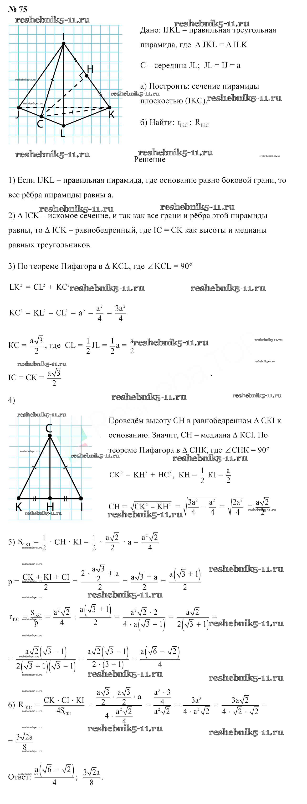 Готовая домашняя работа с ответами по Геометрии за 10 класс Латотин, Чеботаревский, Горбунова Учебник Народная асвета 2020 - Задачи 75