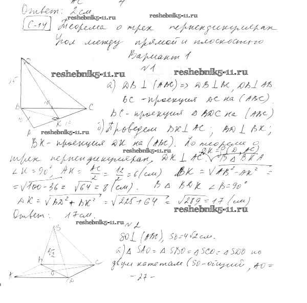 Решебник / к учебнику Атанасяна / самостоятельная работа / ср-14. вариант / 1