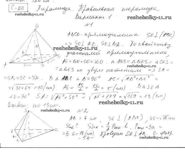 Решебник / к учебнику Атанасяна / самостоятельная работа / ср-20. вариант / 1