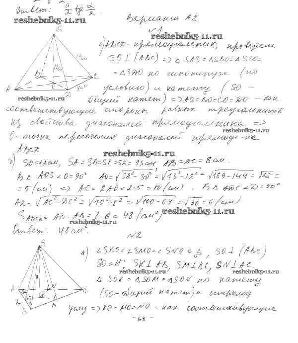 Готовая домашняя работа с ответами по Геометрии за 10 класс Ершова, Голобородько Самостоятельные и контрольные работы Илекса 2014 ФГОС - СР-21. Варианты 2