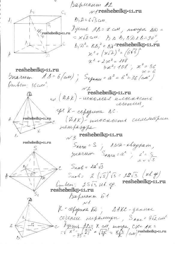 Готовая домашняя работа с ответами по Геометрии за 10 класс Ершова, Голобородько Самостоятельные и контрольные работы Илекса 2014 ФГОС - СР-24. Варианты 2