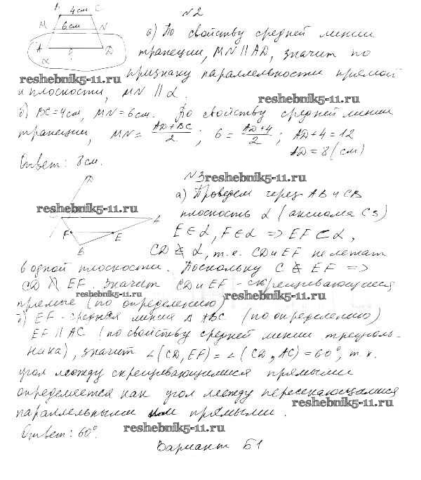 Готовая домашняя работа с ответами по Геометрии за 10 класс Ершова, Голобородько Самостоятельные и контрольные работы Илекса 2014 ФГОС - КР-1. Варианты 2