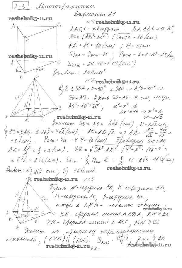 Готовая домашняя работа с ответами по Геометрии за 10 класс Ершова, Голобородько Самостоятельные и контрольные работы Илекса 2014 ФГОС - КР-3. Варианты 1