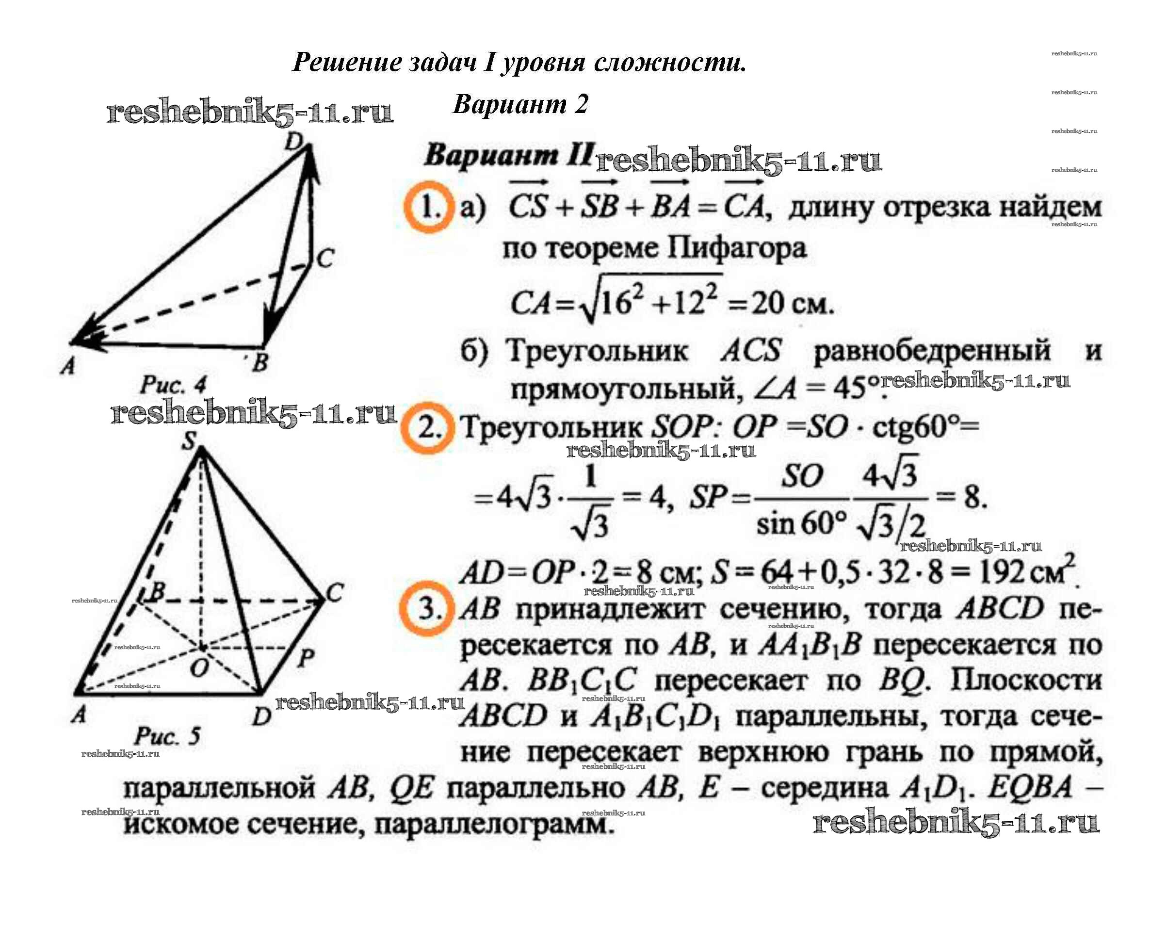 Готовая домашняя работа с ответами по Геометрии за 10 класс Крупина Поурочные разработки Базовый и профильный уровни ВАКО 2020 - Уровень 1 (Варианты) 2