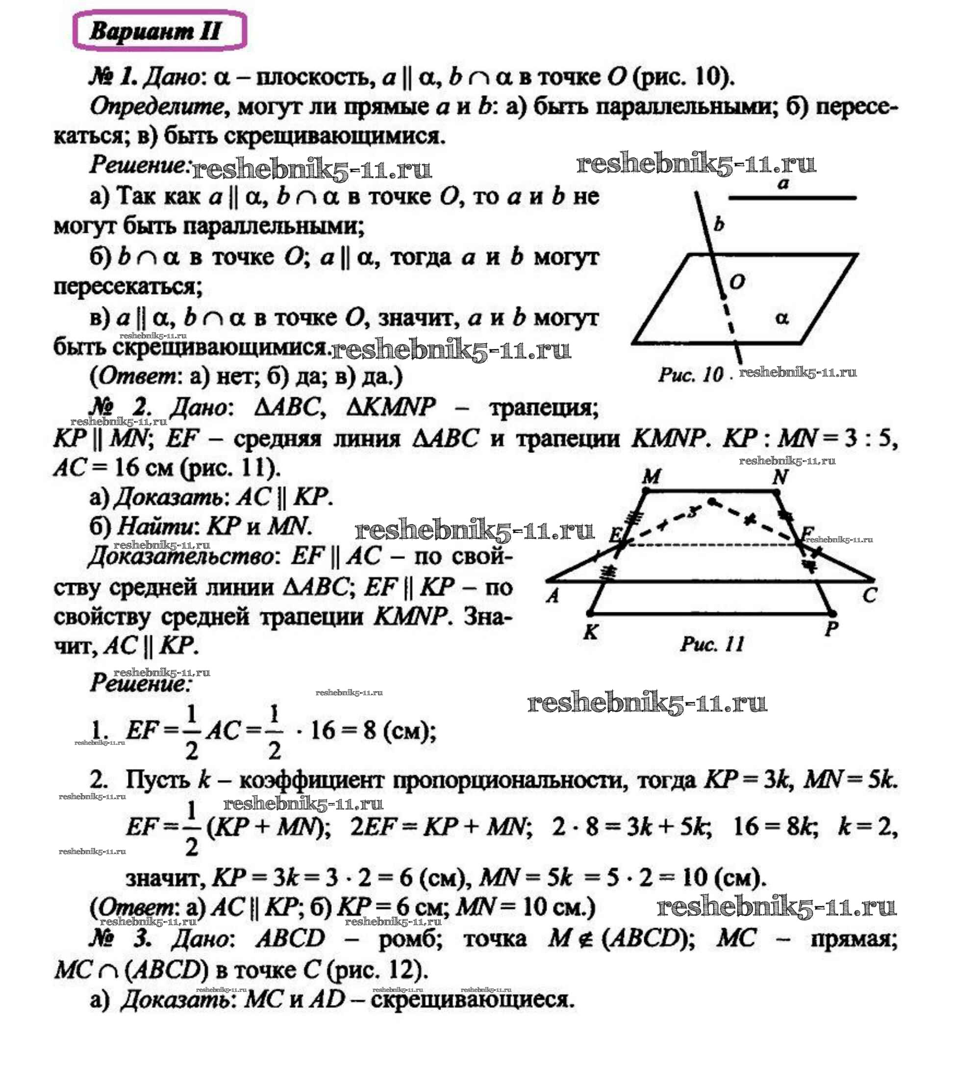 Готовая домашняя работа с ответами по Геометрии за 10 класс Крупина Поурочные разработки Базовый и профильный уровни ВАКО 2020 - Уровень 2 (Варианты) 2