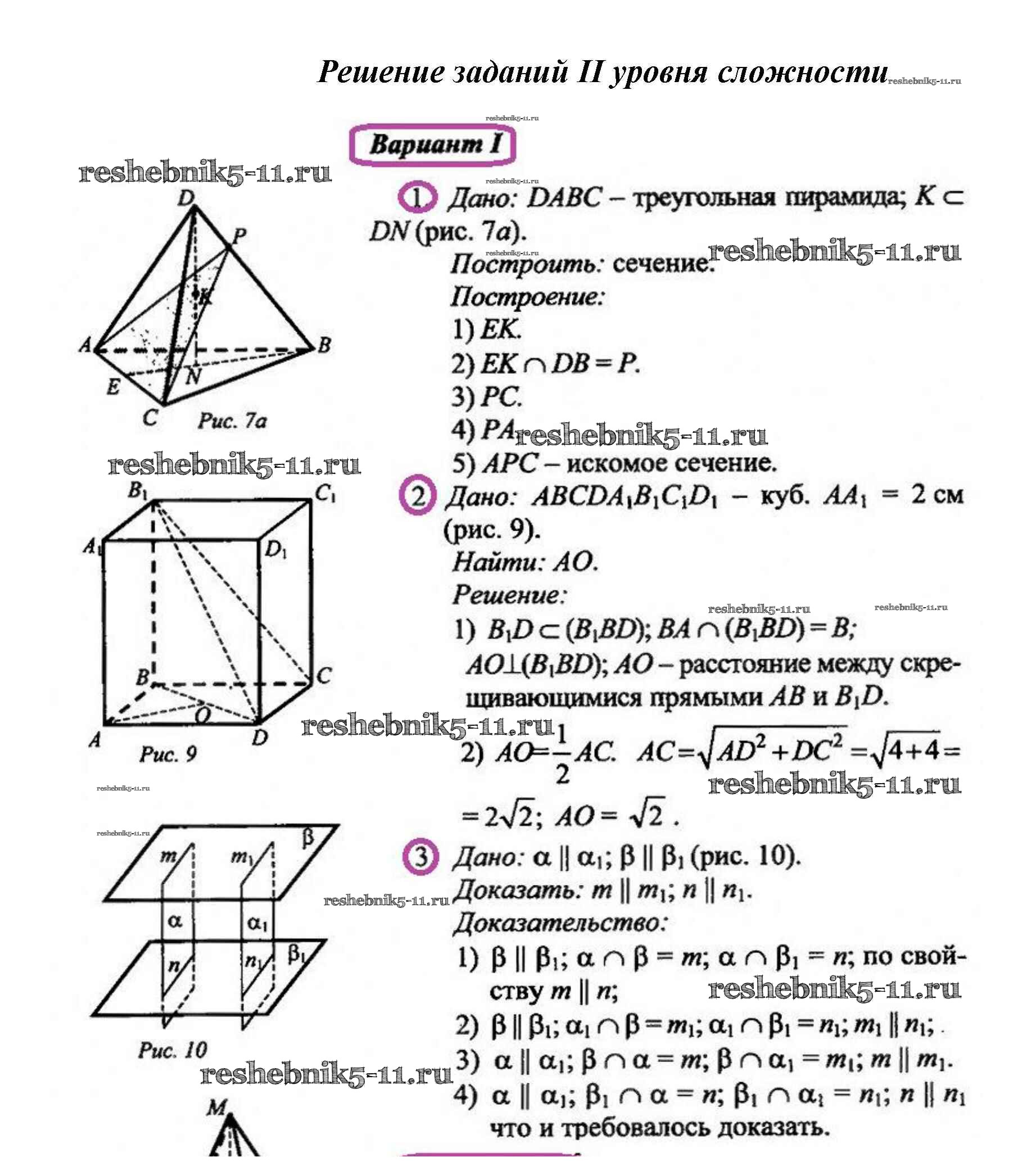 Готовая домашняя работа с ответами по Геометрии за 10 класс Крупина Поурочные разработки Базовый и профильный уровни ВАКО 2020 - Уровень 2 (Варианты) 1