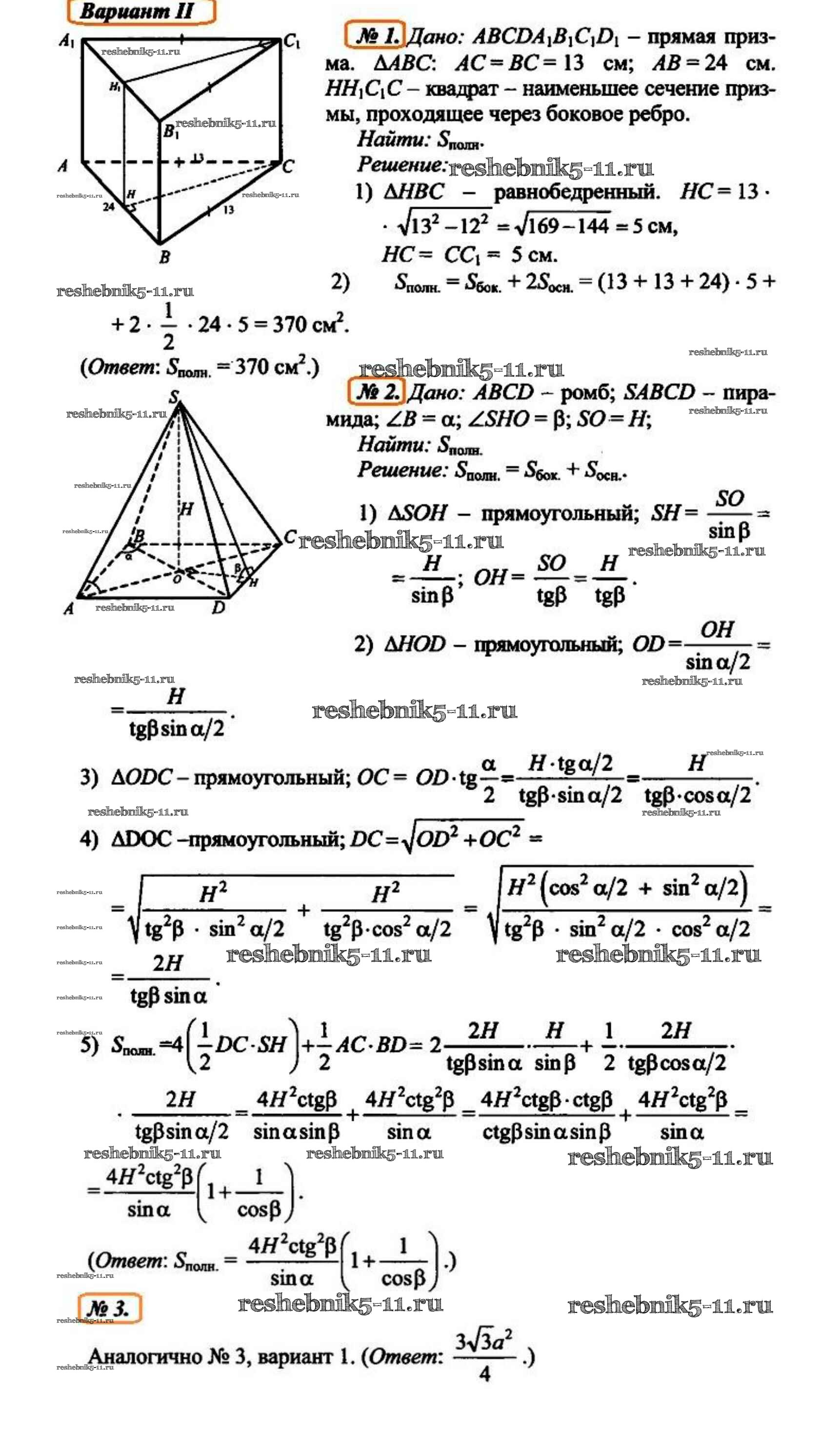 Готовая домашняя работа с ответами по Геометрии за 10 класс Крупина Поурочные разработки Базовый и профильный уровни ВАКО 2020 - Уровень 3 (Варианты) 2