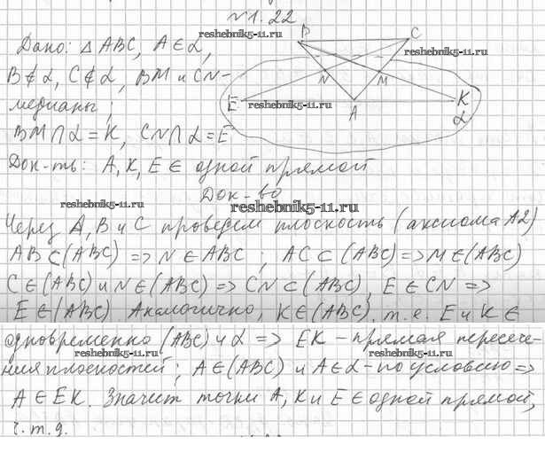 Готовая домашняя работа с ответами по Геометрии за 10 класс Мерзляк, Номировский, Полонский, Якир Учебник Алгоритм успеха Базовый уровень Вентана-граф 2017 ФГОС - §1. Основные понятия стереометрии. Аксиомы стереометрии 1.22