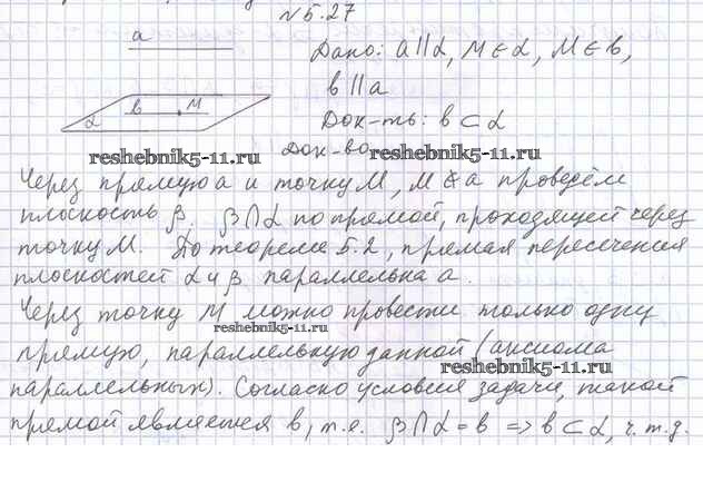 Готовая домашняя работа с ответами по Геометрии за 10 класс Мерзляк, Номировский, Полонский, Якир Учебник Алгоритм успеха Базовый уровень Вентана-граф 2017 ФГОС - §5. Параллельность прямой и плоскости 5.27