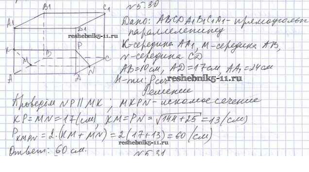 Готовая домашняя работа с ответами по Геометрии за 10 класс Мерзляк, Номировский, Полонский, Якир Учебник Алгоритм успеха Базовый уровень Вентана-граф 2017 ФГОС - §5. Параллельность прямой и плоскости 5.30