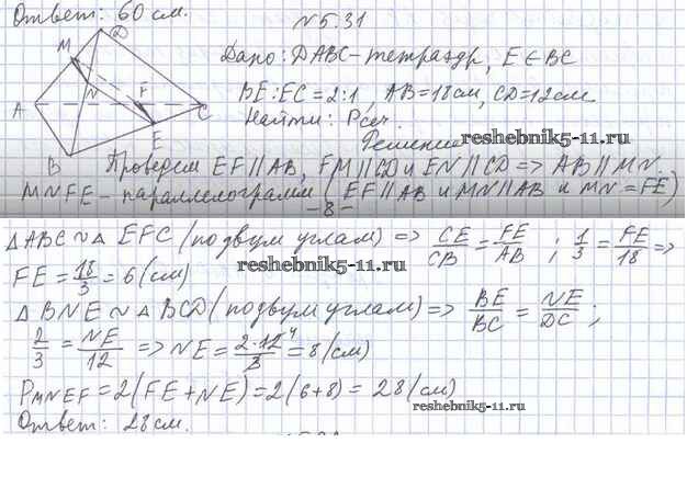 Готовая домашняя работа с ответами по Геометрии за 10 класс Мерзляк, Номировский, Полонский, Якир Учебник Алгоритм успеха Базовый уровень Вентана-граф 2017 ФГОС - §5. Параллельность прямой и плоскости 5.31