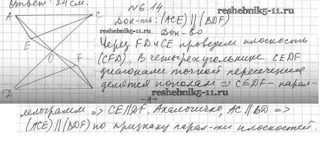 Готовая домашняя работа с ответами по Геометрии за 10 класс Мерзляк, Номировский, Полонский, Якир Учебник Алгоритм успеха Базовый уровень Вентана-граф 2017 ФГОС - §6. Параллельность плоскостей 6.14