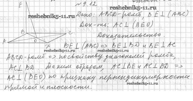Готовая домашняя работа с ответами по Геометрии за 10 класс Мерзляк, Номировский, Полонский, Якир Учебник Алгоритм успеха Базовый уровень Вентана-граф 2017 ФГОС - §9. Перпендикулярность прямой и плоскости 9.12