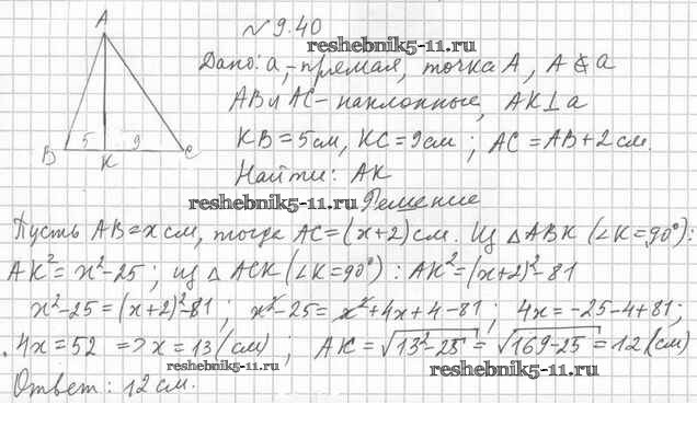 Готовая домашняя работа с ответами по Геометрии за 10 класс Мерзляк, Номировский, Полонский, Якир Учебник Алгоритм успеха Базовый уровень Вентана-граф 2017 ФГОС - §9. Перпендикулярность прямой и плоскости 9.40