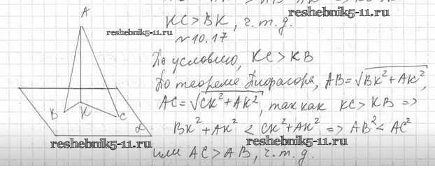 Готовая домашняя работа с ответами по Геометрии за 10 класс Мерзляк, Номировский, Полонский, Якир Учебник Алгоритм успеха Базовый уровень Вентана-граф 2017 ФГОС - §10. Перпендикуляр и наклонная 10.17