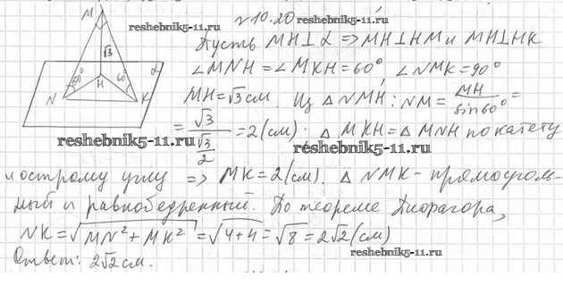 Готовая домашняя работа с ответами по Геометрии за 10 класс Мерзляк, Номировский, Полонский, Якир Учебник Алгоритм успеха Базовый уровень Вентана-граф 2017 ФГОС - §10. Перпендикуляр и наклонная 10.20