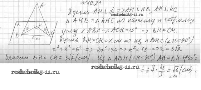 Готовая домашняя работа с ответами по Геометрии за 10 класс Мерзляк, Номировский, Полонский, Якир Учебник Алгоритм успеха Базовый уровень Вентана-граф 2017 ФГОС - §10. Перпендикуляр и наклонная 10.21