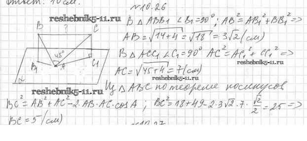 Готовая домашняя работа с ответами по Геометрии за 10 класс Мерзляк, Номировский, Полонский, Якир Учебник Алгоритм успеха Базовый уровень Вентана-граф 2017 ФГОС - §10. Перпендикуляр и наклонная 10.26