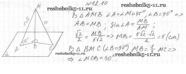 Готовая домашняя работа с ответами по Геометрии за 10 класс Мерзляк, Номировский, Полонский, Якир Учебник Алгоритм успеха Базовый уровень Вентана-граф 2017 ФГОС - §12. Угол между прямой и плоскостью 12.10
