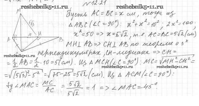 Готовая домашняя работа с ответами по Геометрии за 10 класс Мерзляк, Номировский, Полонский, Якир Учебник Алгоритм успеха Базовый уровень Вентана-граф 2017 ФГОС - §12. Угол между прямой и плоскостью 12.21