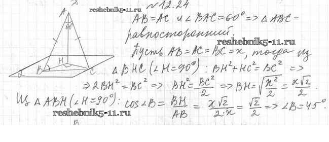 Готовая домашняя работа с ответами по Геометрии за 10 класс Мерзляк, Номировский, Полонский, Якир Учебник Алгоритм успеха Базовый уровень Вентана-граф 2017 ФГОС - §12. Угол между прямой и плоскостью 12.24