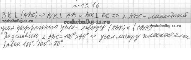 Готовая домашняя работа с ответами по Геометрии за 10 класс Мерзляк, Номировский, Полонский, Якир Учебник Алгоритм успеха Базовый уровень Вентана-граф 2017 ФГОС - §13. Двугранный угол. Угол между плоскостями 13.16