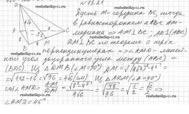 Готовая домашняя работа с ответами по Геометрии за 10 класс Мерзляк, Номировский, Полонский, Якир Учебник Алгоритм успеха Базовый уровень Вентана-граф 2017 ФГОС - §13. Двугранный угол. Угол между плоскостями 13.21