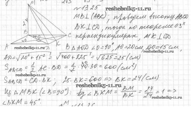 Готовая домашняя работа с ответами по Геометрии за 10 класс Мерзляк, Номировский, Полонский, Якир Учебник Алгоритм успеха Базовый уровень Вентана-граф 2017 ФГОС - §13. Двугранный угол. Угол между плоскостями 13.25