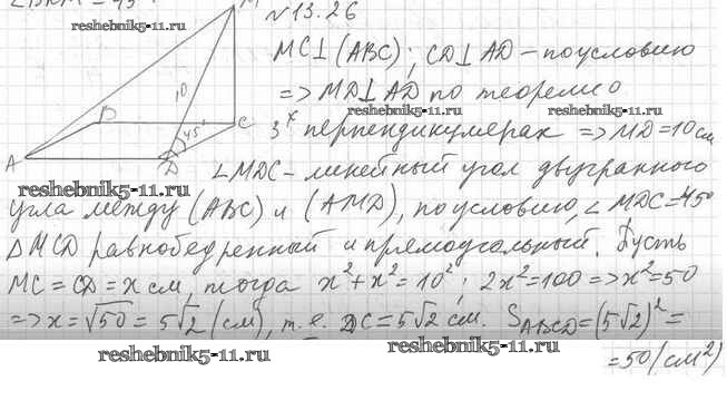 Готовая домашняя работа с ответами по Геометрии за 10 класс Мерзляк, Номировский, Полонский, Якир Учебник Алгоритм успеха Базовый уровень Вентана-граф 2017 ФГОС - §13. Двугранный угол. Угол между плоскостями 13.26