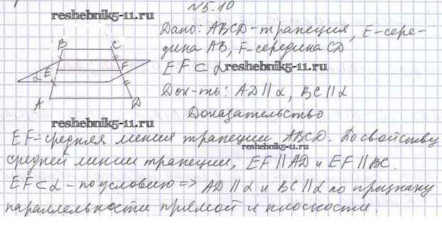 Готовая домашняя работа с ответами по Геометрии за 10 класс Мерзляк, Номировский, Поляков Учебник Алгоритм успеха Углубленный уровень Вентана-граф 2021 ФГОС - §5. Параллельность прямой и плоскости 5.10
