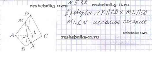 Готовая домашняя работа с ответами по Геометрии за 10 класс Мерзляк, Номировский, Поляков Учебник Алгоритм успеха Углубленный уровень Вентана-граф 2021 ФГОС - §5. Параллельность прямой и плоскости 5.32