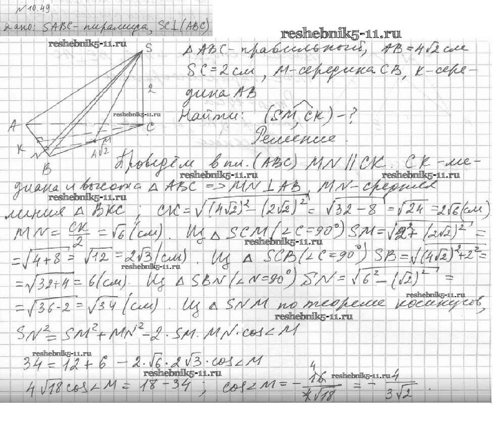 Геометрия за 10 класс Мерзляк Учебник Алгоритм успеха Углубленный уровень Вентана-граф §10 10.49