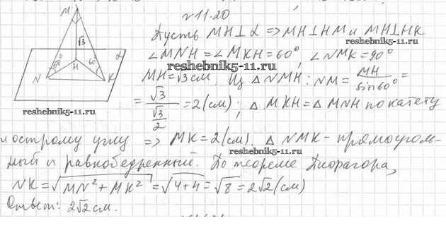 Готовая домашняя работа с ответами по Геометрии за 10 класс Мерзляк, Номировский, Поляков Учебник Алгоритм успеха Углубленный уровень Вентана-граф 2021 ФГОС - §11. Перпендикуляр и наклонная 11.20