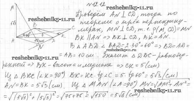 Готовая домашняя работа с ответами по Геометрии за 10 класс Мерзляк, Номировский, Поляков Учебник Алгоритм успеха Углубленный уровень Вентана-граф 2021 ФГОС - §12. Теорема о трёх перпендикулярах 12.12