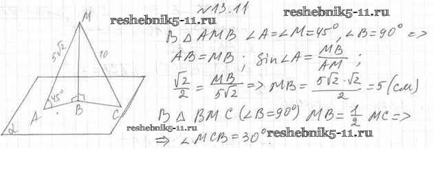 Готовая домашняя работа с ответами по Геометрии за 10 класс Мерзляк, Номировский, Поляков Учебник Алгоритм успеха Углубленный уровень Вентана-граф 2021 ФГОС - §13. Угол между прямой и плоскостью 13.11
