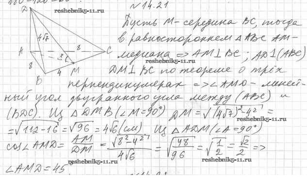 Готовая домашняя работа с ответами по Геометрии за 10 класс Мерзляк, Номировский, Поляков Учебник Алгоритм успеха Углубленный уровень Вентана-граф 2021 ФГОС - §14. Двугранный угол. Угол между двумя плоскостями 14.21