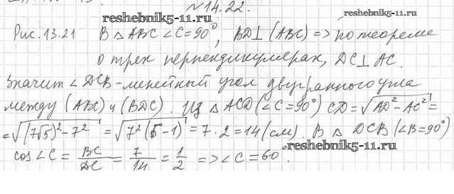 Готовая домашняя работа с ответами по Геометрии за 10 класс Мерзляк, Номировский, Поляков Учебник Алгоритм успеха Углубленный уровень Вентана-граф 2021 ФГОС - §14. Двугранный угол. Угол между двумя плоскостями 14.22