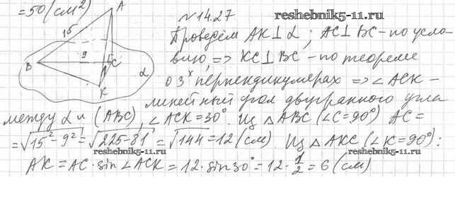 Готовая домашняя работа с ответами по Геометрии за 10 класс Мерзляк, Номировский, Поляков Учебник Алгоритм успеха Углубленный уровень Вентана-граф 2021 ФГОС - §14. Двугранный угол. Угол между двумя плоскостями 14.27