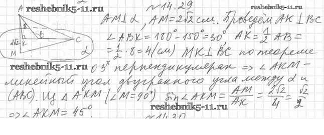 Готовая домашняя работа с ответами по Геометрии за 10 класс Мерзляк, Номировский, Поляков Учебник Алгоритм успеха Углубленный уровень Вентана-граф 2021 ФГОС - §14. Двугранный угол. Угол между двумя плоскостями 14.29