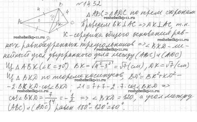 Готовая домашняя работа с ответами по Геометрии за 10 класс Мерзляк, Номировский, Поляков Учебник Алгоритм успеха Углубленный уровень Вентана-граф 2021 ФГОС - §14. Двугранный угол. Угол между двумя плоскостями 14.32