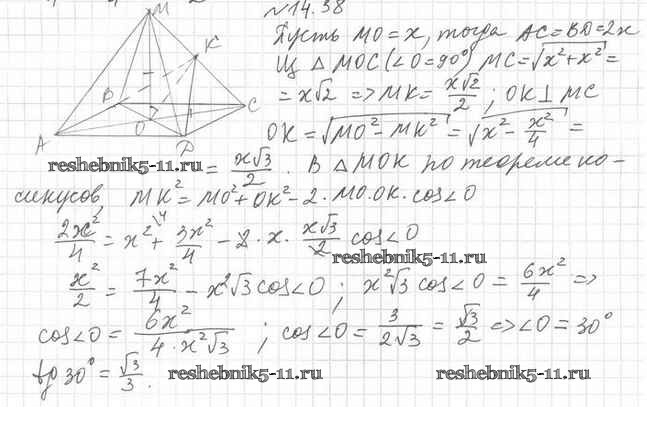 Готовая домашняя работа с ответами по Геометрии за 10 класс Мерзляк, Номировский, Поляков Учебник Алгоритм успеха Углубленный уровень Вентана-граф 2021 ФГОС - §14. Двугранный угол. Угол между двумя плоскостями 14.38